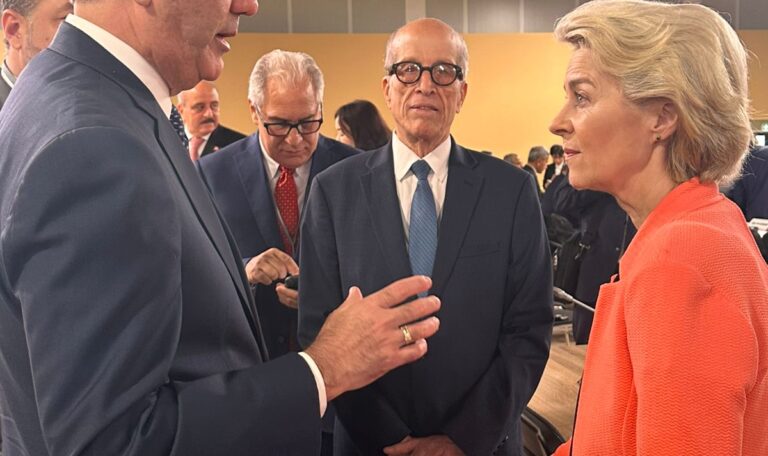 Entre las personalidades con la cual conversó el mandatario dominicano, estuvo Ursula Gertrud, presidenta de la Unión Europea.