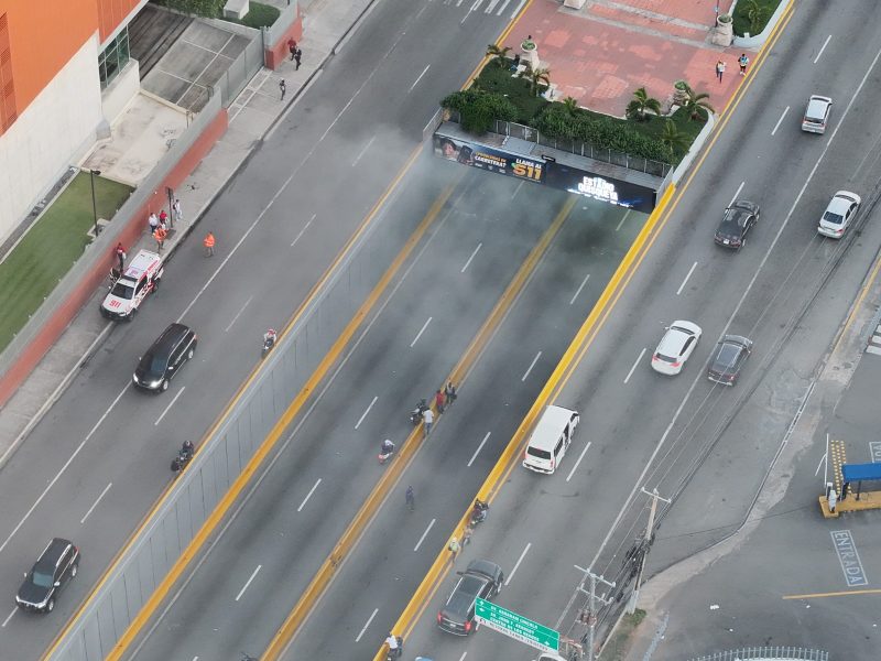 El flujo vehicular ha sido completamente restablecido en la avenida 27 de Febrero, en el Distrito Nacional, luego de que un vehículo se incendiara la mañana de este martes dentro del túnel en dirección oeste-este, lo que provocó un importante congestionamiento en la vía.